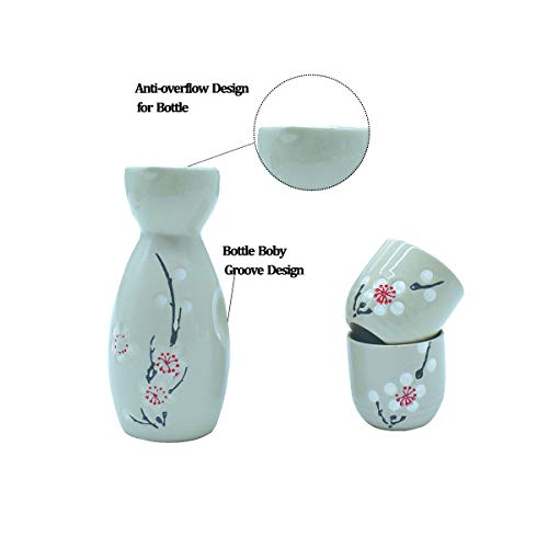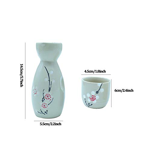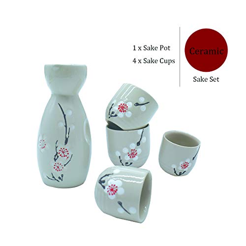 Specification: Liwein Sake Set keramiek, 5-delig, handbeschilderd, Japanse kersenbloesem, porselein, Sake beker, warme wijnpot, traditionele keramische mokken, wijnglazen, knutselen, geschenk, wit