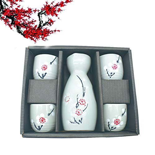 Voordelige cadeauset: 1 x sake-pot, 4 x sake-mokken, alles in een stevige geschenkdoos, veilig en mooi, perfect cadeau voor Nieuwjaar en Kerstmis.